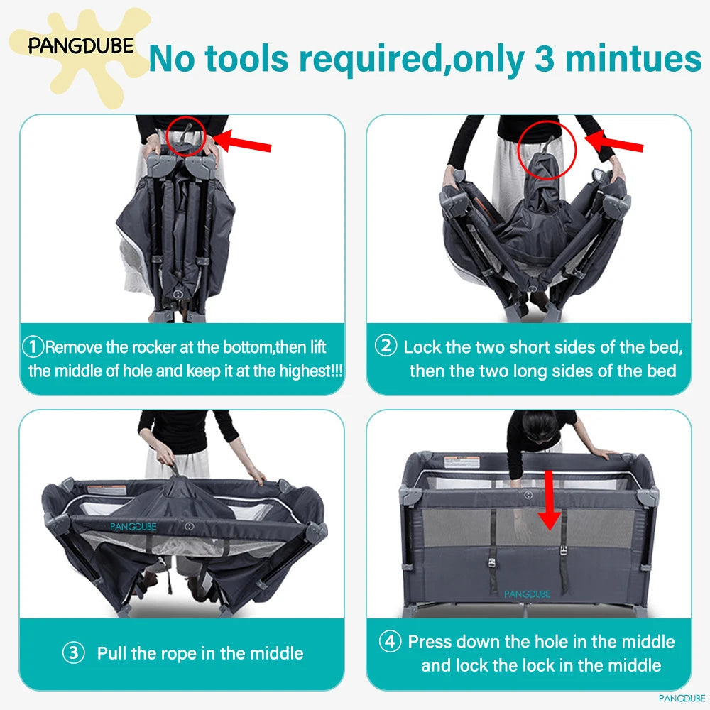 Esta innovadora cuna 4 en 1 plegable está diseñada especialmente para familias modernas que buscan versatilidad, practicidad y ahorro de espacio. Con funciones de cuna, mecedora, cambiador y parque de juegos, sin necesidad de montaje, es la solución perfecta para el cuidado completo del bebé desde recién nacido hasta los 3 años, facilitando la vida de los padres con un solo mueble multifuncional.