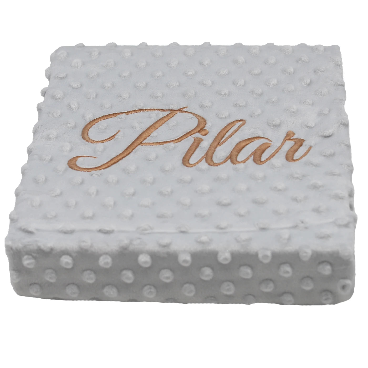 Esta encantadora manta personalizada para bebé con bordado del nombre está diseñada especialmente para crear un regalo único y especial que el bebé atesorará durante años. Con diseño topito suave, bordado personalizado del nombre y tamaño perfecto para minicuna y cuna, es la solución perfecta para regalo de nacimiento, recuerdo personalizado y proporcionar calidez y confort al bebé con un toque personal que hace que cada manta sea única.